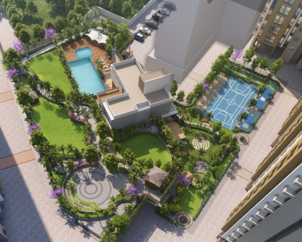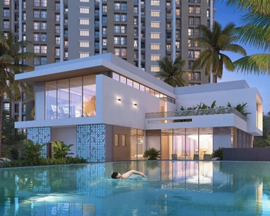 Provident Palm Vista is a tropical-themed residential project by Puravankara Limited, situated on Kalyan-Shilphata Road in Thane, Maharashtra. Spanning 16 acres, the development emphasizes open spaces and lush greenery, featuring 70% open areas adorned with over 30 varieties of palm trees.